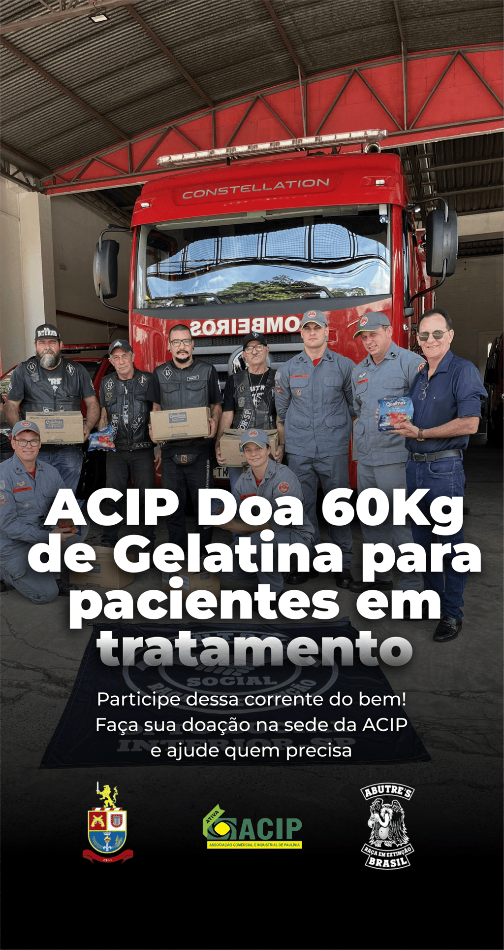 A ACIP doou 60kg de gelatina para pacientes em tratamento, em uma ação que une cuidado, empatia e colaboração.