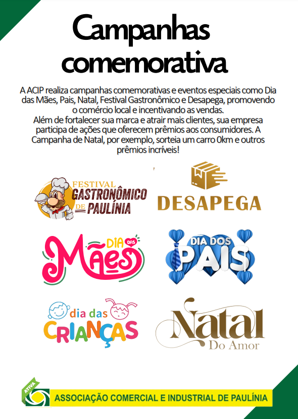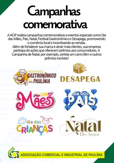 A ACIP realiza, todos os anos, campanhas temáticas e promocionais que movimentam o comércio, geram engajamento com o consumidor e incentivam o consumo consciente e local.