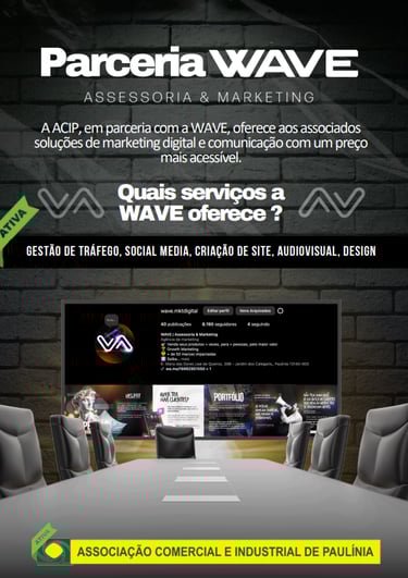 Pensando nisso, a ACIP firmou parceria com a Agência WAVE, uma empresa especializada em marketing digital, branding, publicidade e comunicação estratégica, para oferecer aos seus associados acesso a serviços de alto nível com valores reduzidos e condições especiais.